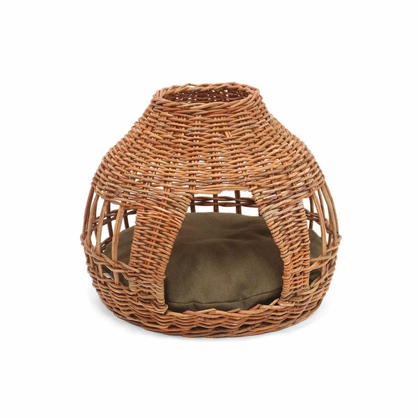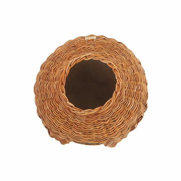 皮付きラタンを使って編まれたハンドメイドのキャットハウス。