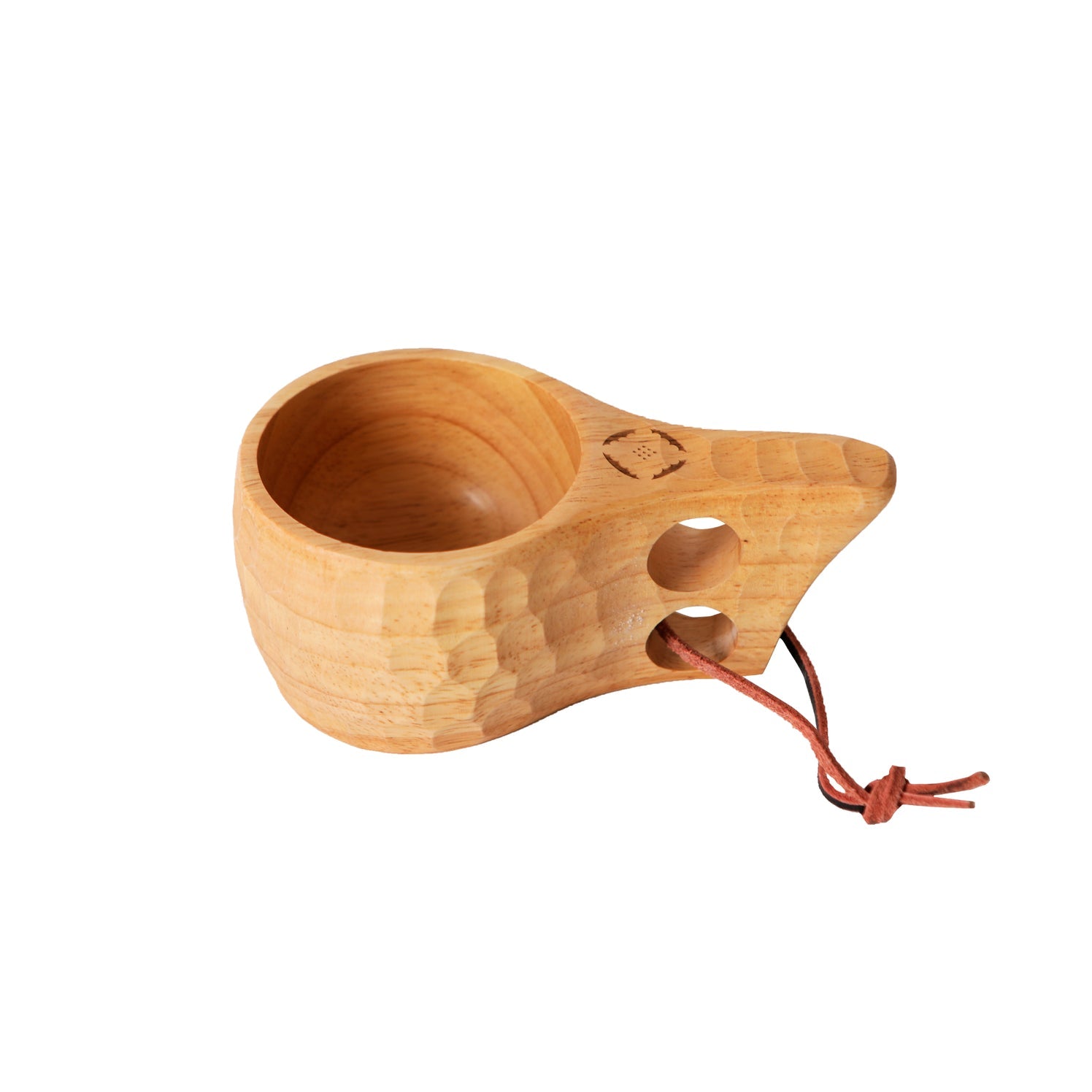 天然木を使用した手作りべっ甲柄のククサ。容量約150mlで直径約2.3cmのラウンドカットが指にフィットします。ストラップ付きなので吊るしても使える優れもの。表面はカビや損傷の防止、品質を維持する環境保護ワニス加工を施しています。自然環境保護植物塗料を使用している為、身体への影響はございません。