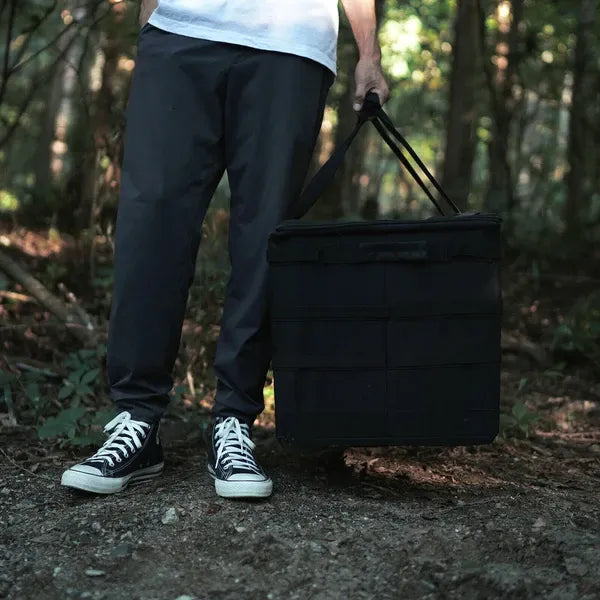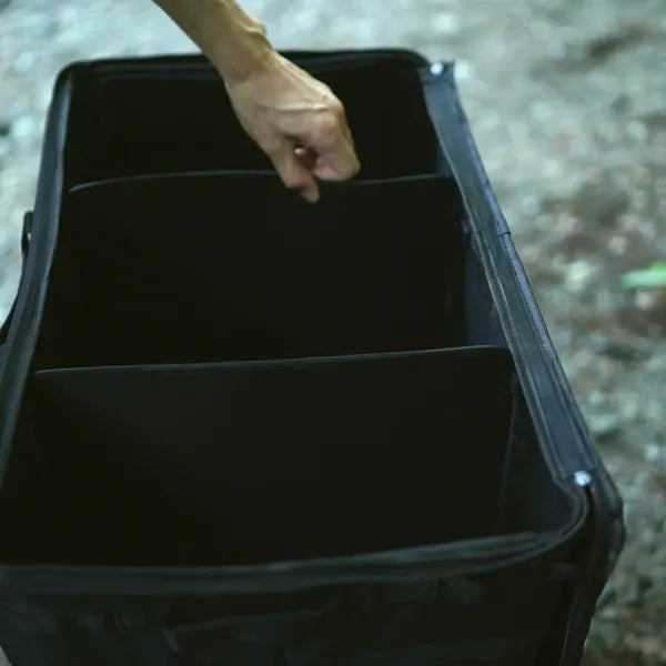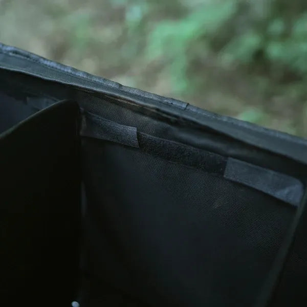 車内の収納に特化した設計となっており、大容量でありながら車内にぴったりと収まります。使わないときはコンパクトに折りたたんで収納することが可能なため、収納場所を取りません。バッグのフレームにはスチールワイヤーを採用、丈夫で美しい形状をキープ。 600デニールのポリエステル材と底面のゴム足により、荷物を汚れやダメージからガード、耐久性も優れます。2枚の仕切り板で収納スペースをカスタマイズ可能。ワンタッチバケット2個分のスペースも確保。側面のベルトループにカラビナやフックを取り付けて、見せる収納として活用可能。