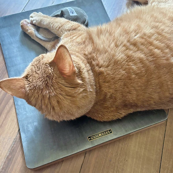 猫が体を伸ばしてくつろげるようにアルミ面を緩やかなカーブに仕上げました。