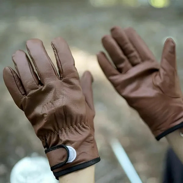 1.羊革ならではのしなやかな質感と、確かな耐久性を両立。裏地には伸縮性のあるニットを使いました。機能性を重視したい女性におすすめです。 2. ファッション性と機能性を絶妙に融合させたアウトドア愛好者のためのアイテムです。焚き火の手配やテントの設営・撤収時の作業をスムーズにサポートし、手を保護します。また、庭仕事やバイクのライド時にも最適。 3. おしゃれな素材と色:おしゃれな素材と色使いでデザインされたキャンプグローブは、さまざまなアウトドアシーンでの活用に最適です。 4. 裏地には伸縮性に優れたニットを採用しています。この柔らかな素材は、動きに合わせて手にしっかりとフィットし、キャンプグローブの着用感を一層快適にします。作業時の手の動きを妨げない設計となっており、アウトドアシーンでの活動をサポートします。 5. 便利なループ付き:このループを利用することで、グローブの収納や取り外しも一瞬で、キャンプ場やアウトドアシーンでの作業効率も大幅にアップします。シンプルかつスタイリッシュな外観は、どんなシーンでもあなたのスタイルを引き立てる頼れるパートナーとなるでしょう。