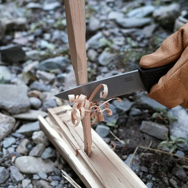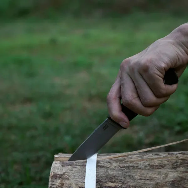 刃厚3.6mmのフルタングのためバトニングなどのハードな使用にも耐えられます。 またブレードの背でファイアースターター使用可能です。 ブレードは汚れや傷が目立ちにくいストーンウォッシュ仕上げのフラットグラインド、非常に高い防錆性と耐食性を備えています。 キャンプやハンティングをはじめとするアウトドアアクティビティに最適なナイフです。 TPRラバーハンドルは握りやすく、滑りにくい特徴があり、強いグリップ力で安全かつ安定した作業が可能です。