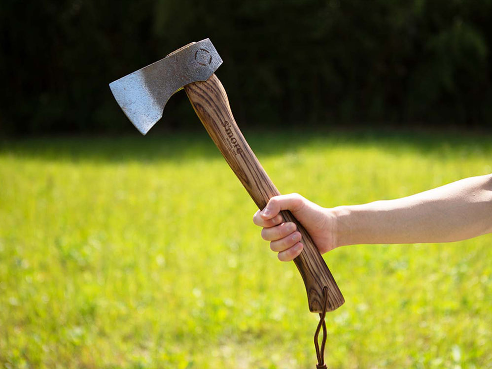木製グリップで握りやすくどなたでも使いやすい形状に仕上げました。曲線の刃は力を均一に伝わるようになっており、誰でも扱いやすい斧になっています。