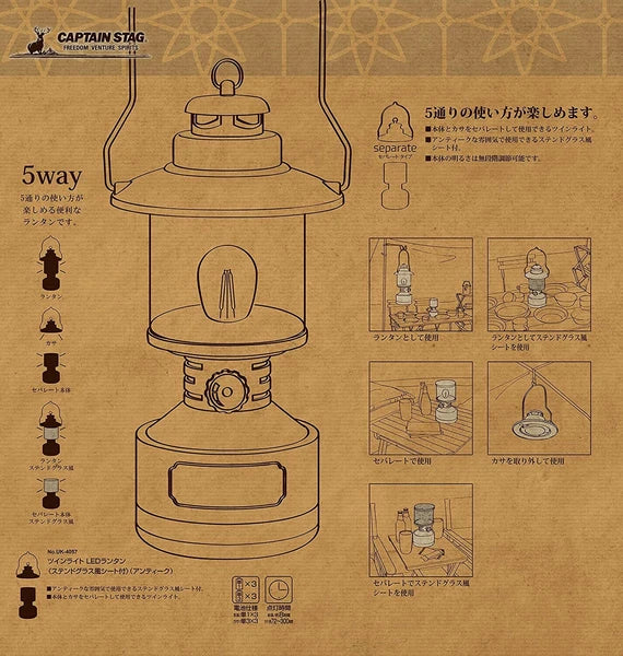 ツインライト LEDランタン ステンドグラス風シート付 / Twin Light LED Lantern Stained glass style sheet included
