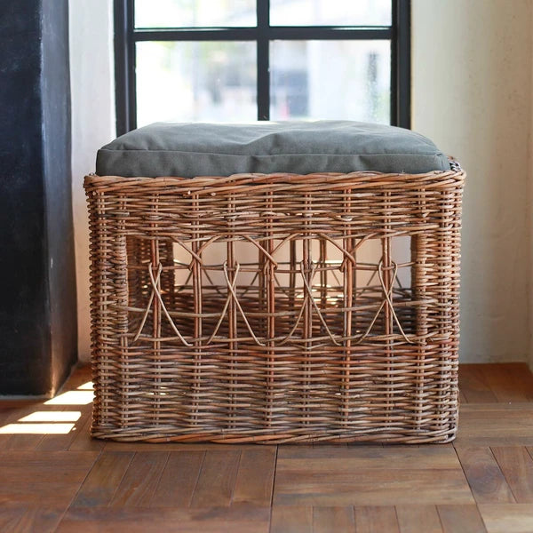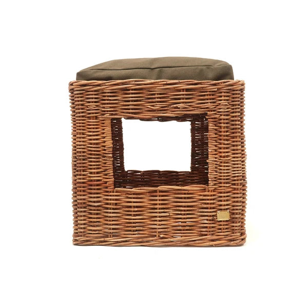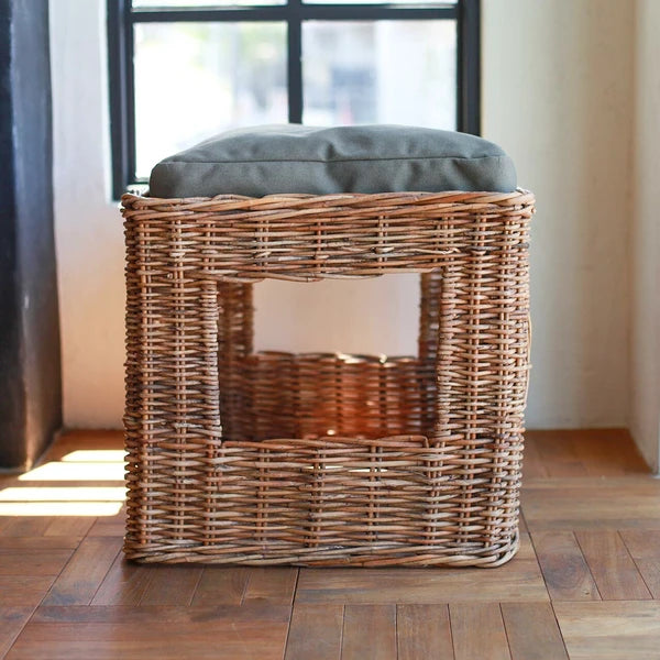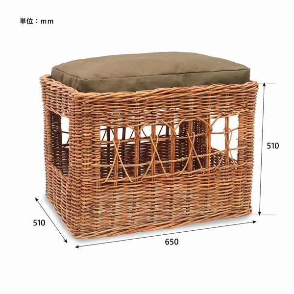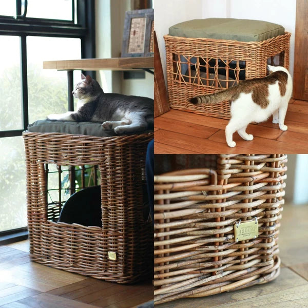 表皮をそのまま残した皮付きラタンで編んだ猫用トイレカバーです。