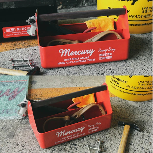 持ち運びに便利なウッドハンドルがついたツールボックス。工具入れとしてはもちろん、スパイスラックとして、食品をディスプレイしながらストックしても。