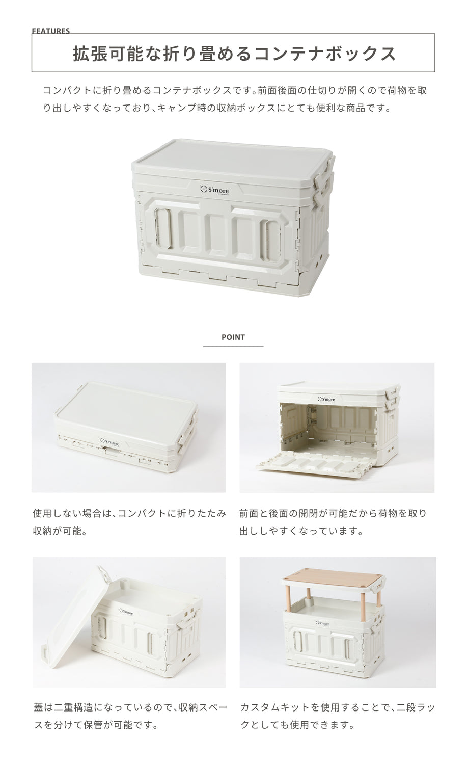 【拡張可能な折り畳めるコンテナボックス】