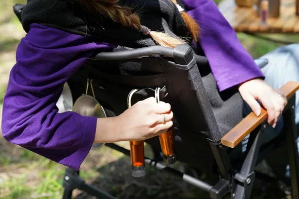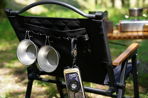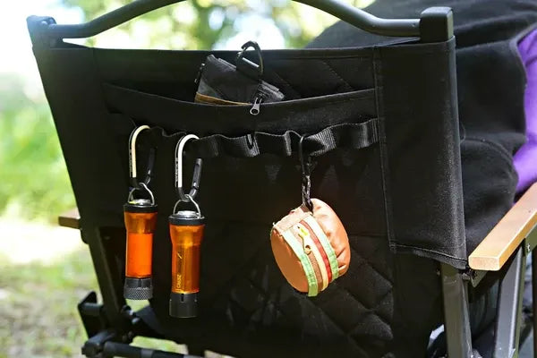 背もたれ背面にはポケット&ハンギングループ付。 分解してコンパクトに収納可能、車の積載時に便利。 |