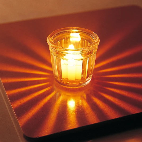 グラスを通して映るキャンドルの灯りが特徴的なガラス製キャンドルホルダー。