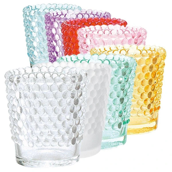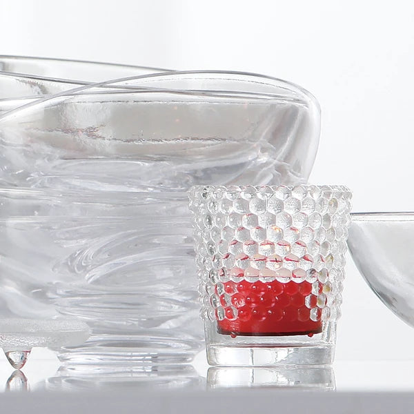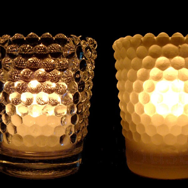 ガラス表面の均等に浮き出た突起をキャンドルの灯りが揺らめきます。