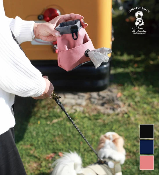 愛犬のお散歩にかかせない、片手で開閉できるカラビナ付きのマナーポーチ。