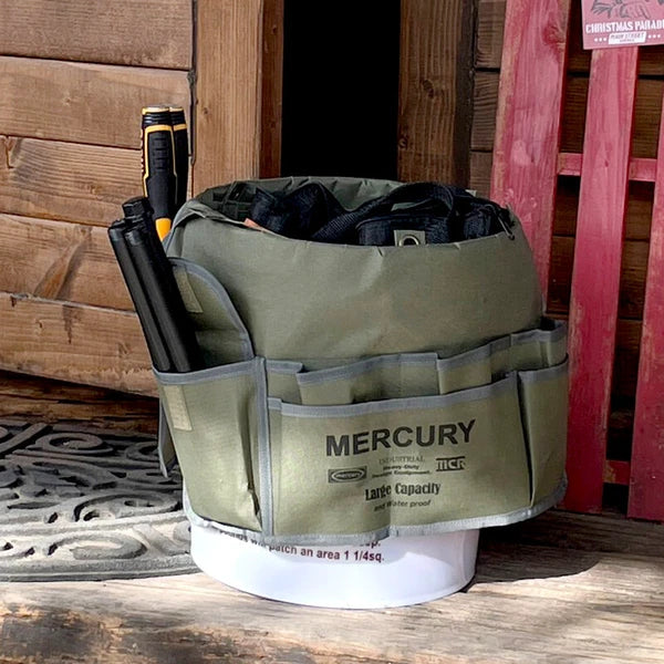 バケツオーガナイザーがリニューアル。インダストリアルPPバケツにピッタリ装着出来、ボタンを外せばマルチにご使用いただけます。