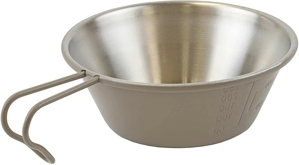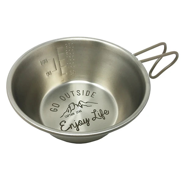 優れた耐久性のある18-8ステンレスを採用。広口で食器として使えます。計量に便利な目盛付。