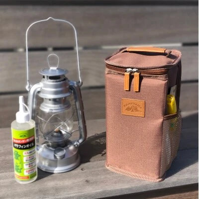 持ち運び便利なカメヤマオイルランタン専用の収納ケース。 内側にはファスナー付きメッシュポケットや、ボトルホルダー(ゴム)付き、底にはクッション材を内蔵しています。