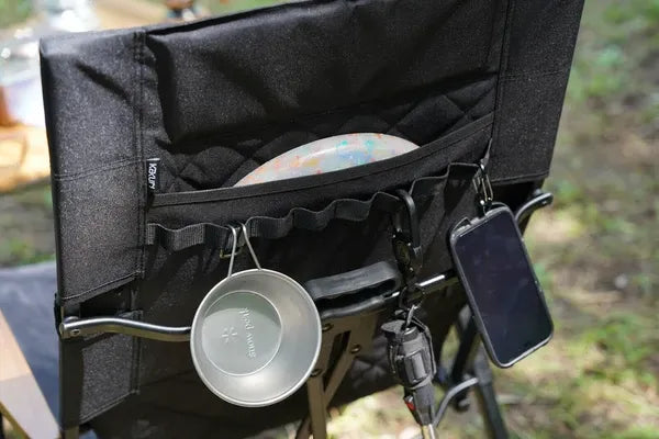 背もたれ背面にはポケット&ハンギングループ付。