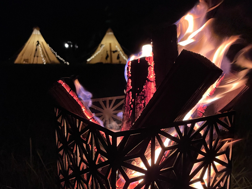 伝統柄を楽しみながら焚き火ができるのが大きな特徴の1つ。火を美しく彩ります。