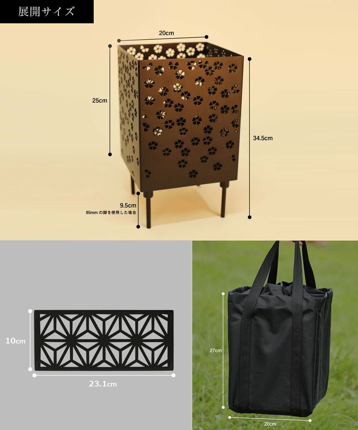 【商品名】和柄4面焚き火台 (焚き火台&横長天板&収納袋セット)