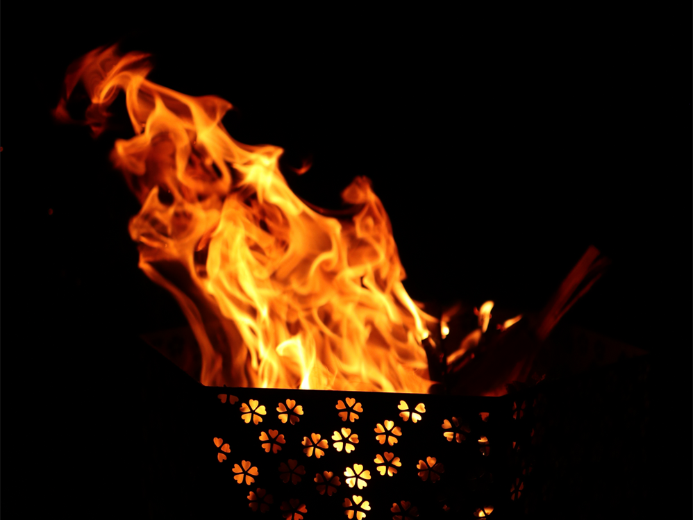伝統柄を楽しみながら焚き火ができるのが大きな特徴の1つ。火を美しく彩ります。