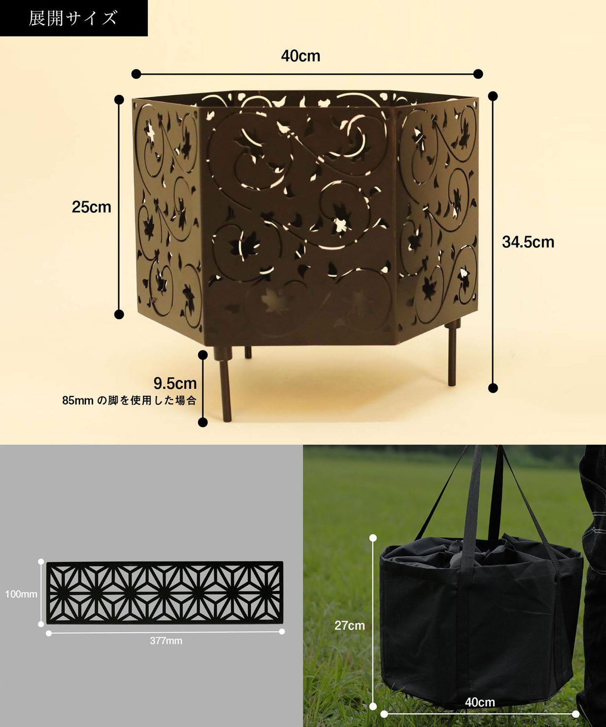 日本の伝統和柄でデザインされた上品な紋様が、焚き火をより楽しく。