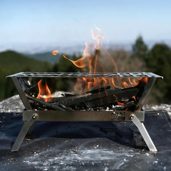 シンプルだから使い方はアイデア次第。 商品の説明: コンパクトに折りたためてデザイン性が高い、逆折りたたみ式デザインを取り入れました。コンパクトに畳むことができるので、持ち運びに便利です。シンプルでスタイリッシュなのでデザインを重視したいキャンパーにもお勧めです。火床には厚さ2mmの丈夫なステンレス素材を採用しているのでダッチオーブンも安心して載せることができます。 商品の特徴: ・コンパクトに折りたため、簡単に展開できるシンプル構造です。 ・焚き火をじっくり楽しむソロキャンプにちょうど良いサイズ(W×D×H:40.5×16.5×20.5cm )。 ・サイドパネルは六角レンチで取り外し可能、直火感が味わえるよりシンプルな形状に、またロースタイルのテーブルへとカスタムが可能。アルコールストーブや小型ウッドストーブ用のミニテーブルとしても使用可能。 ・スタイリッシュなゴトクが2枚付属、焚き火を楽しみながら調理ができます。 ・火床は厚さ2mmの丈夫なステンレス製、ダッチオーブンも安心して置けます。