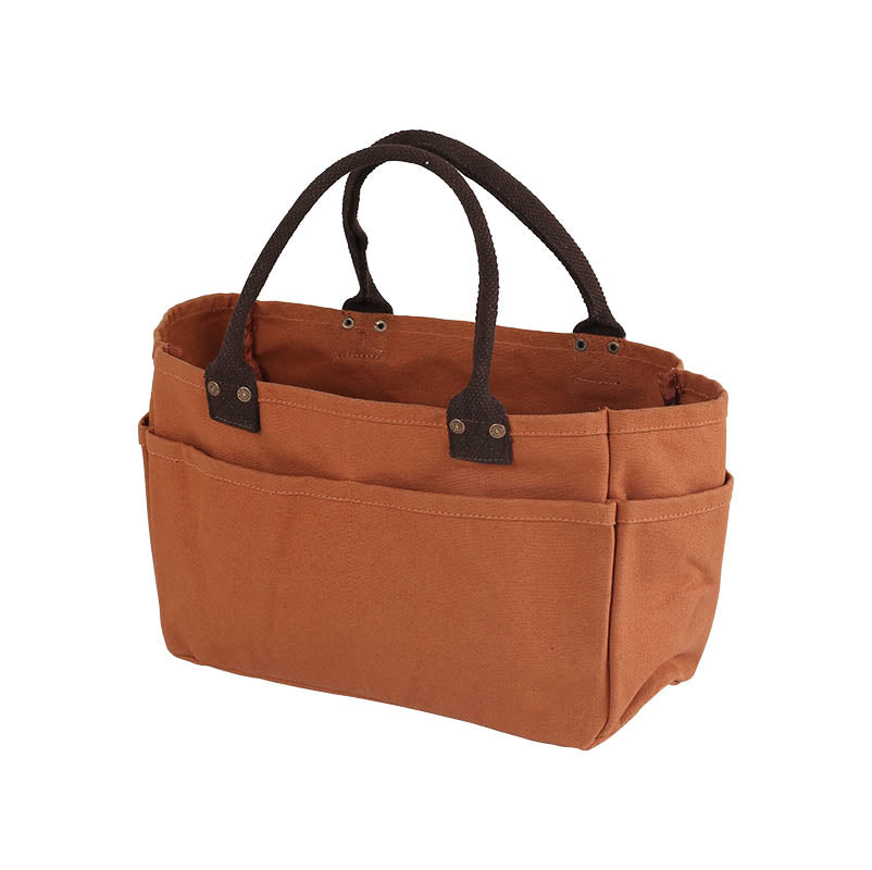 1マイル程のちょっとした外出時に、必要な物だけをさっと入れて使えるミニバッグ。 14オンスのキャンバスを使用した少し固めの生地感は、使っていく中で馴染み、味が出てきます。 浅い作りになっているので、ごちゃっと入れた物もすぐに見つけて取り出すことができます。 外側のポケットにも小分け収納可能◎ ハトメに施されたDULTONのエンボス加工、サイドポケットの内側にさり気なく施されたタグ等、ディテールからもこだわりを感じます。 ついつい色違いで持ちたくなる、選べる4カラー展開。