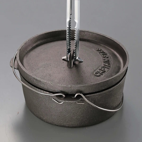 ダッチオーブンのリッドリフターとしての機能も兼ねる、1台2役の炭バサミです。