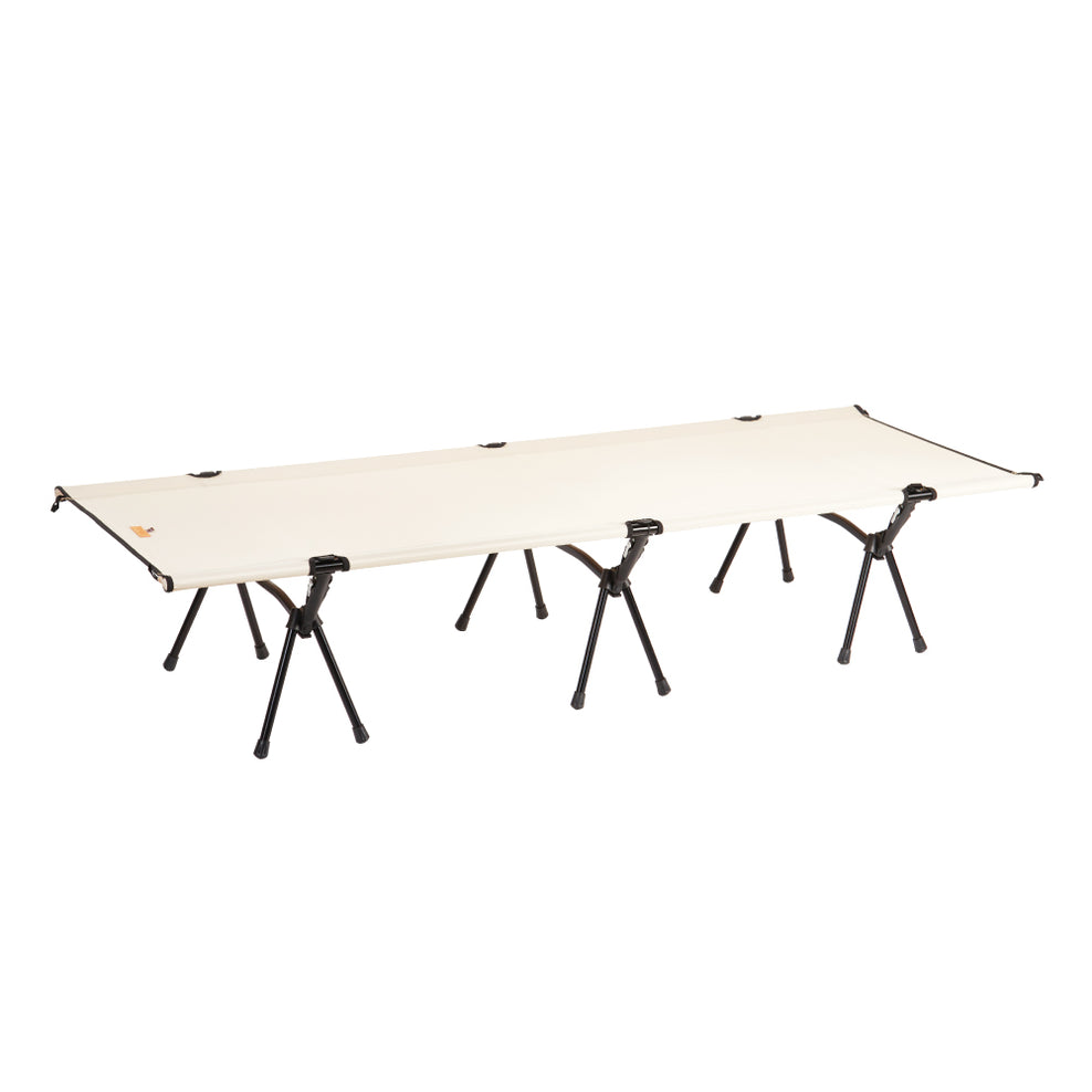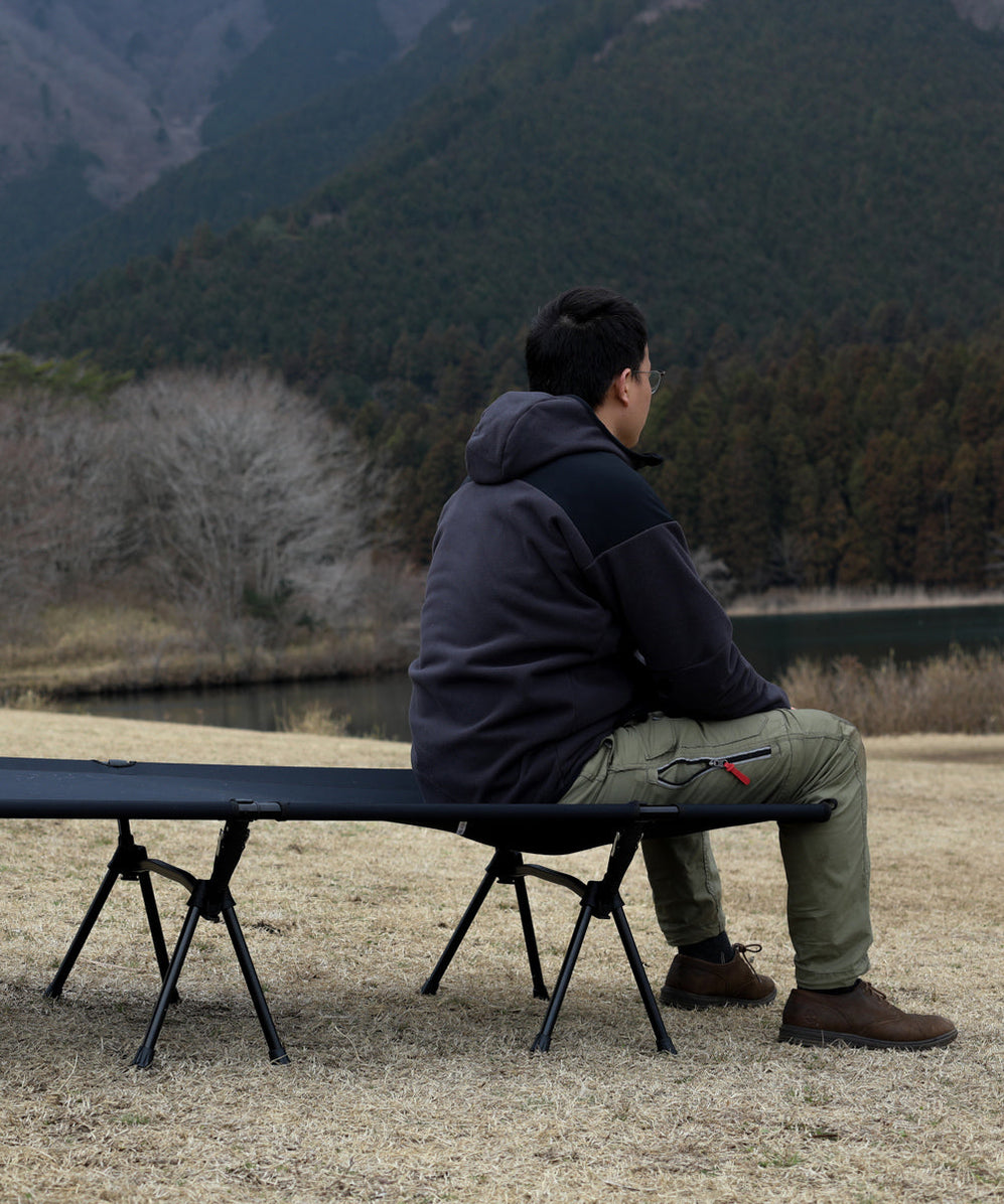 高さ調節はもちろん、ベッド以外にもチェアとしてもお使い頂けます。腰掛けベンチとしての活用や、横になりたい時のベッドとして2WAYで使用できるのでキャンプでの幅が広がります。