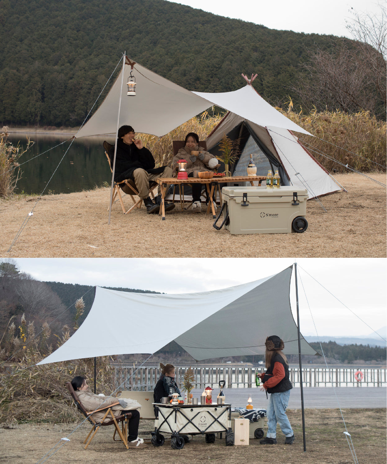 材質:A6061アルミ合金を採用となり、従来品のA6063より強度がかなり高い、耐食性も比較的に良好で、タープ天井高240以上の快適な空間を作り出します。末永く愛用していくことができます。友達やファミリーとキャンプの場合は最適です。