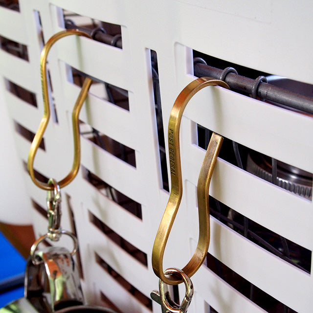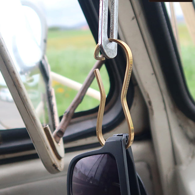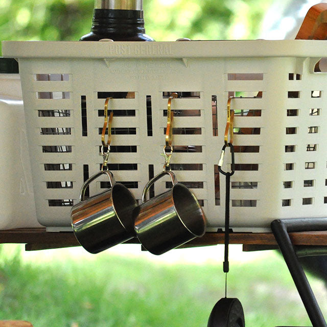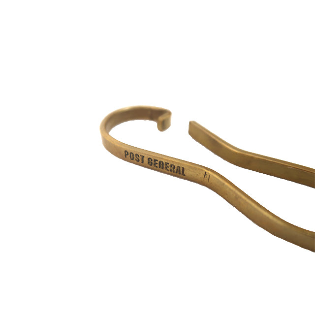 真鍮の輝きとPOSTGENERALの刻印が印象的で、OUTDOORシーンやインテリアの中でも、さりげなく存在感を感じる、魅力あるフックです。