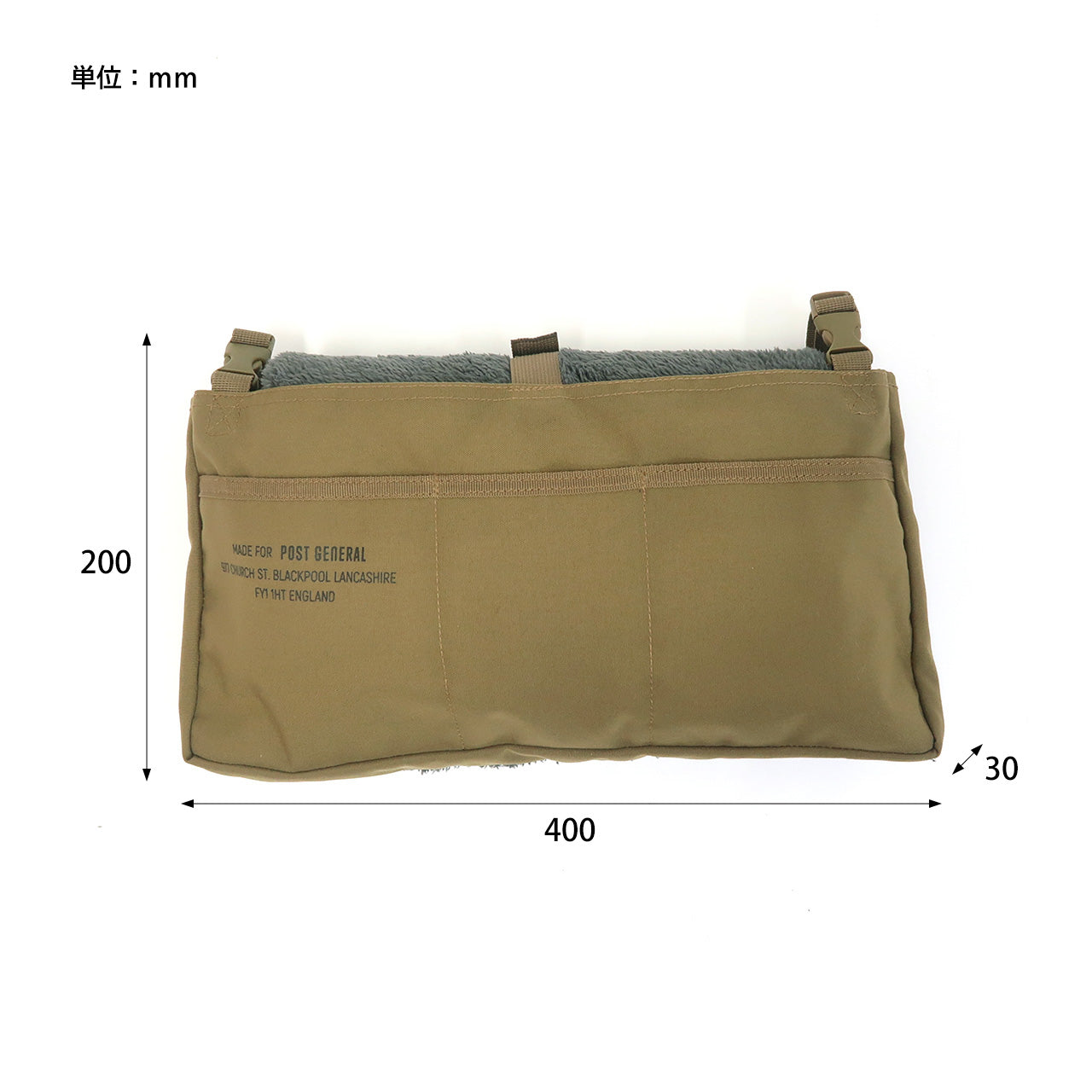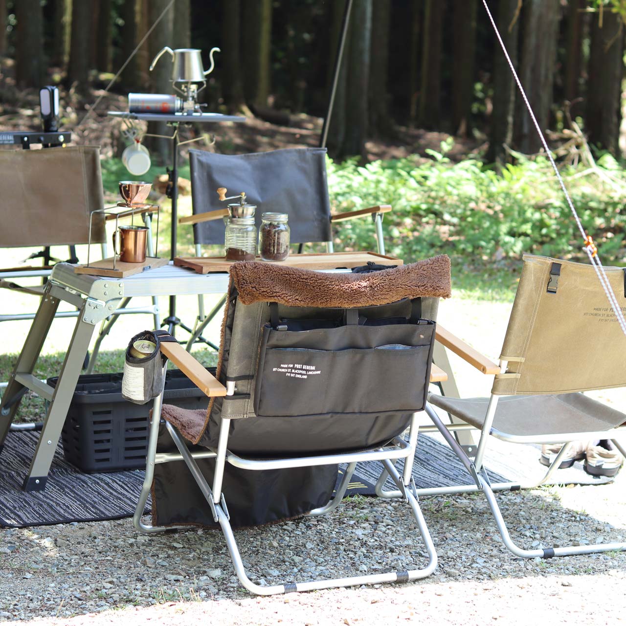 ブランケットと収納バッグはジッパーで繋がるため、 市販のチェアでも背面収納としてお使いいただけます。