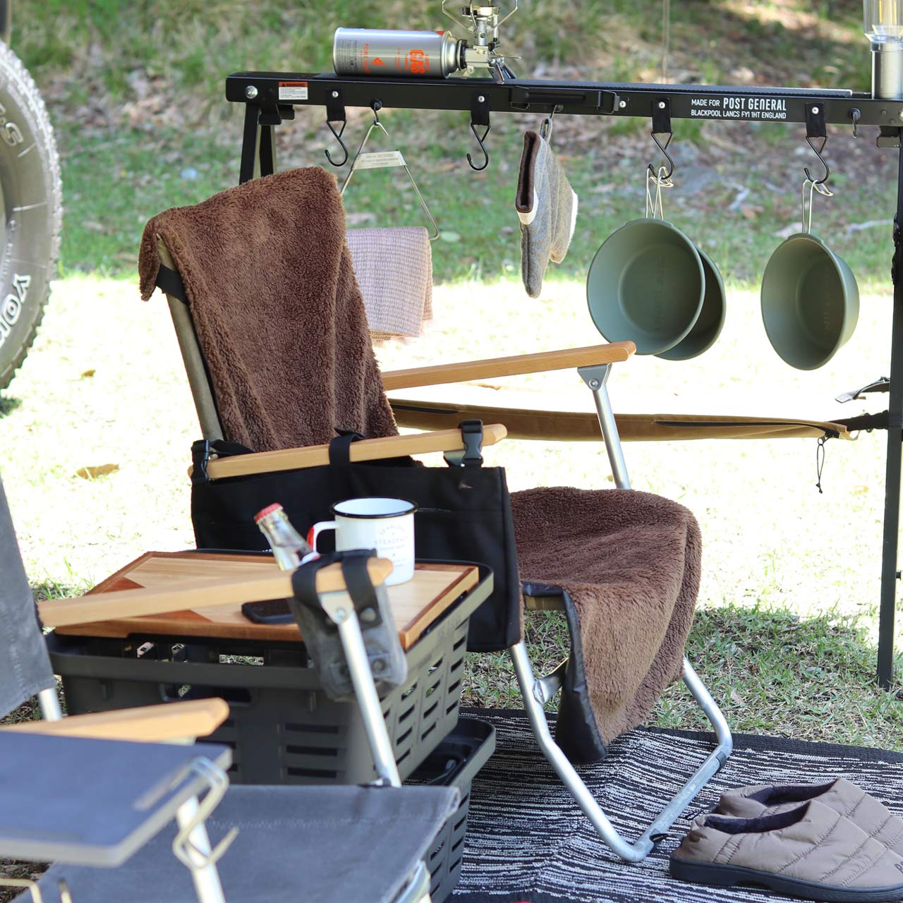 ブランケットはチェアカバーとして、 収納バッグはアームレストや背面に取り付けることで 小物収納としてもお使いいただけます。