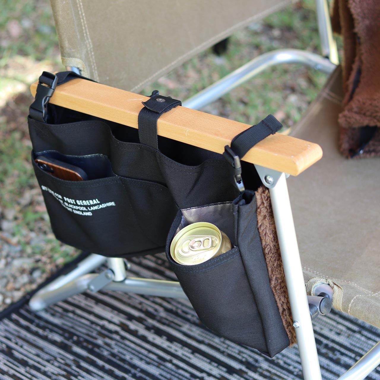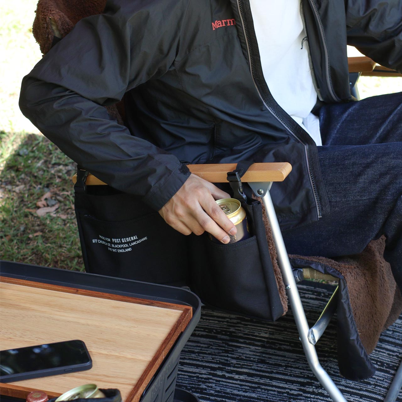 収納バッグのポケットの内生地には アルミシートが縫製されており、 アームレストに取り付けると ドリンクホルダーとしてもお使いいただけます。
