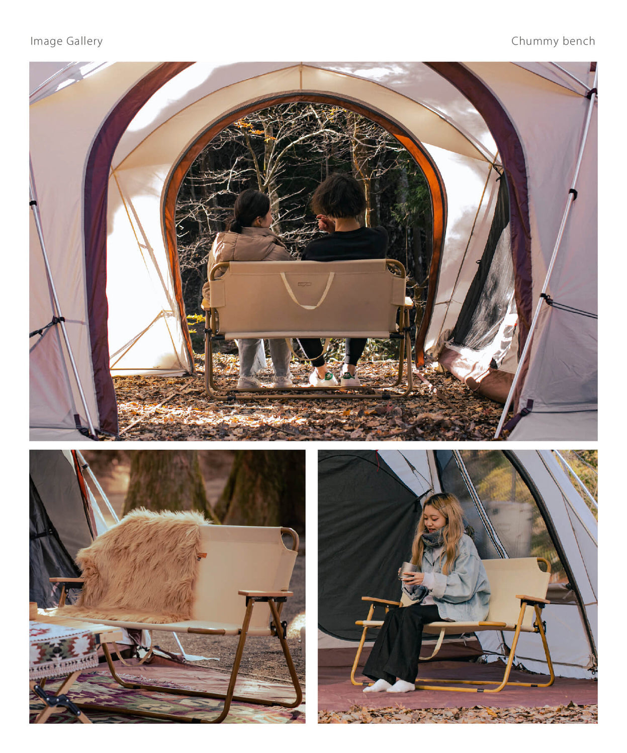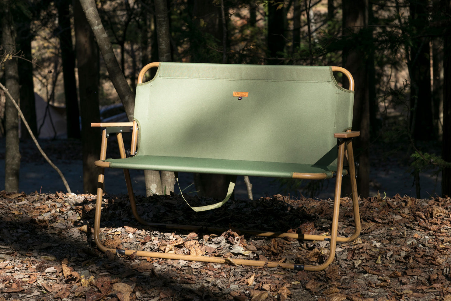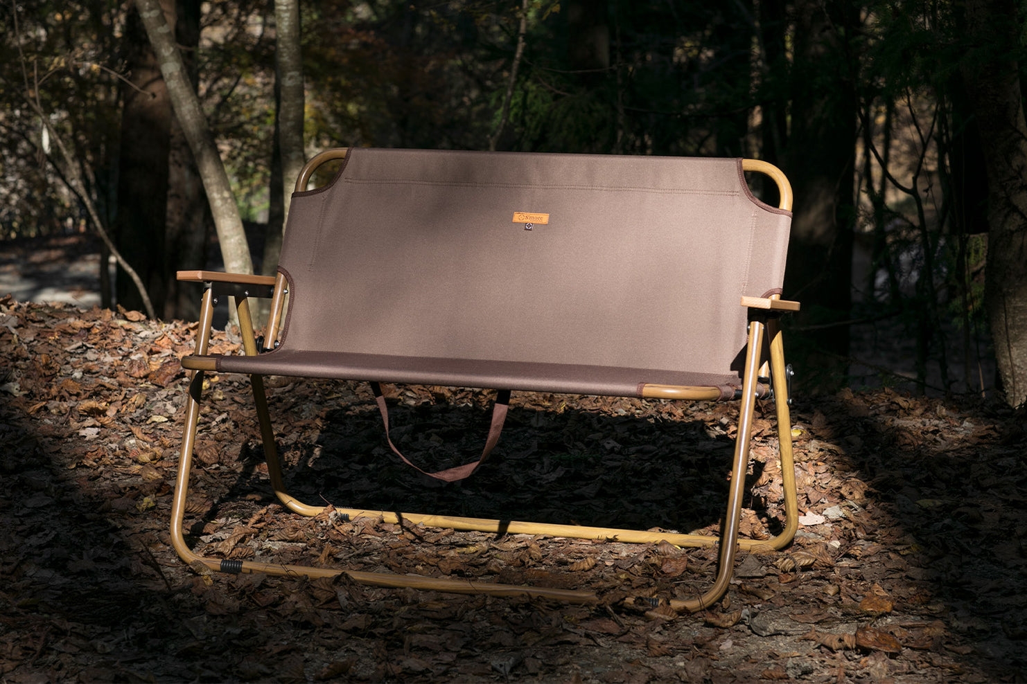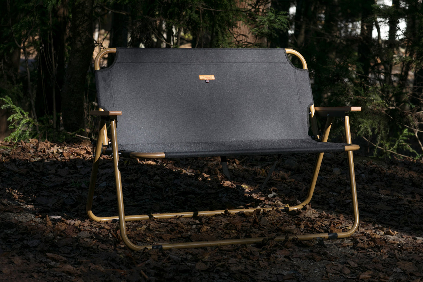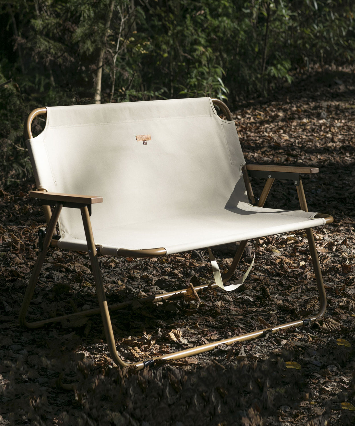 耐荷重約180kg(片側90kg×2)の安定感あるアルミフレーム構造で二人掛けベンチとなっております。広々とした座面サイズでゆったりお過ごしいただけます。