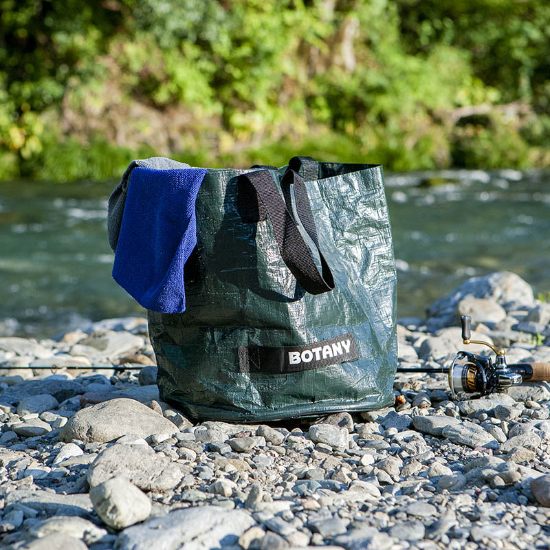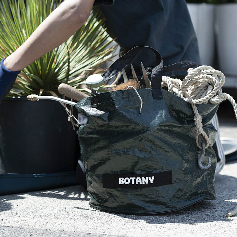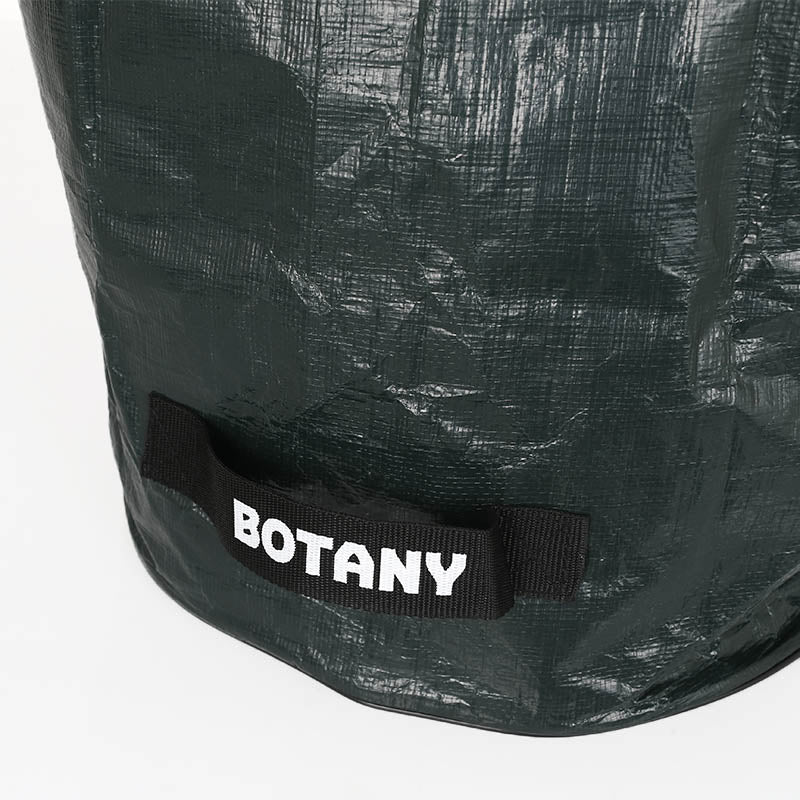 雑多に物を入れてラフに使いたい、丈夫で大容量の筒状バッグ。 深いグリーンのボディ、ブラックの持ち手に仕立てたホワイトのBOTANYロゴがタフでクールな印象に。 ガーデンツールを入れたり、なんとなく物を詰め込んで部屋の片隅に置いても絵になります。 底が円形で自立するので、車中に1つあればいざという時にも便利。 ザーッと水洗いして乾かせば、汚れも簡単に落ちてくれるので、ランドリーやアウトドアでも活躍します。