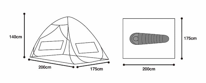 大人2人までなら足と手を伸ばせるサイズ感となっています。ソロキャンプだと快適に広々とくつろげる広さです。