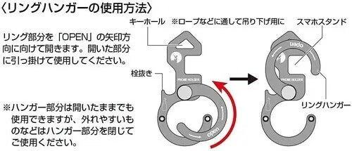 4吊り下げ可能(キーホール使用orリングハンガー使用)、