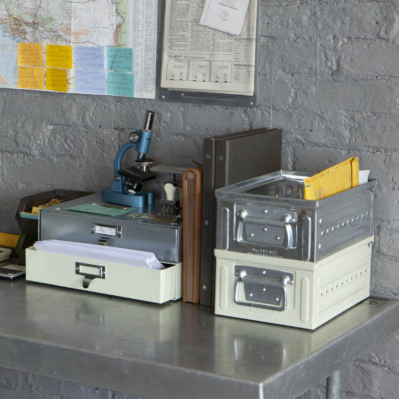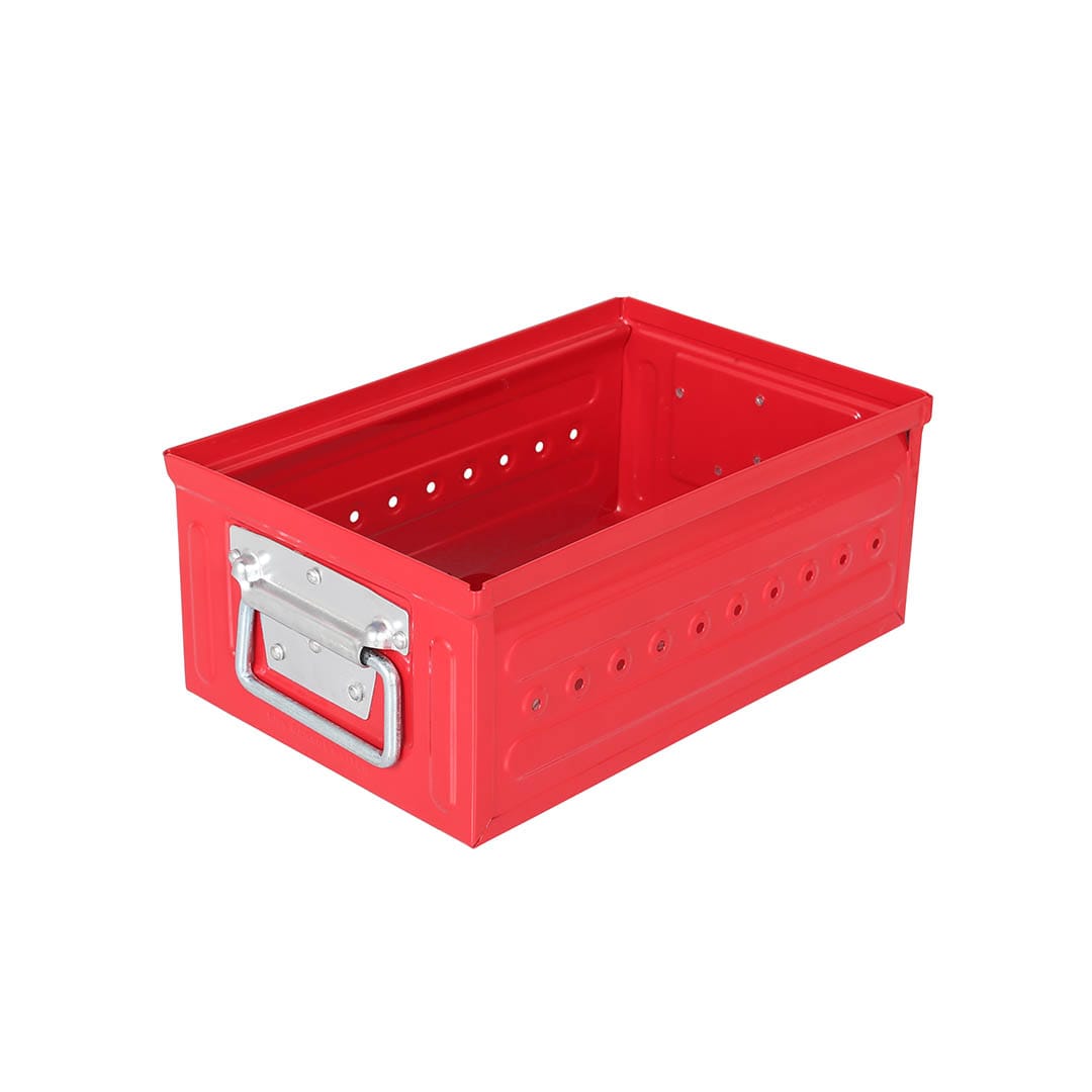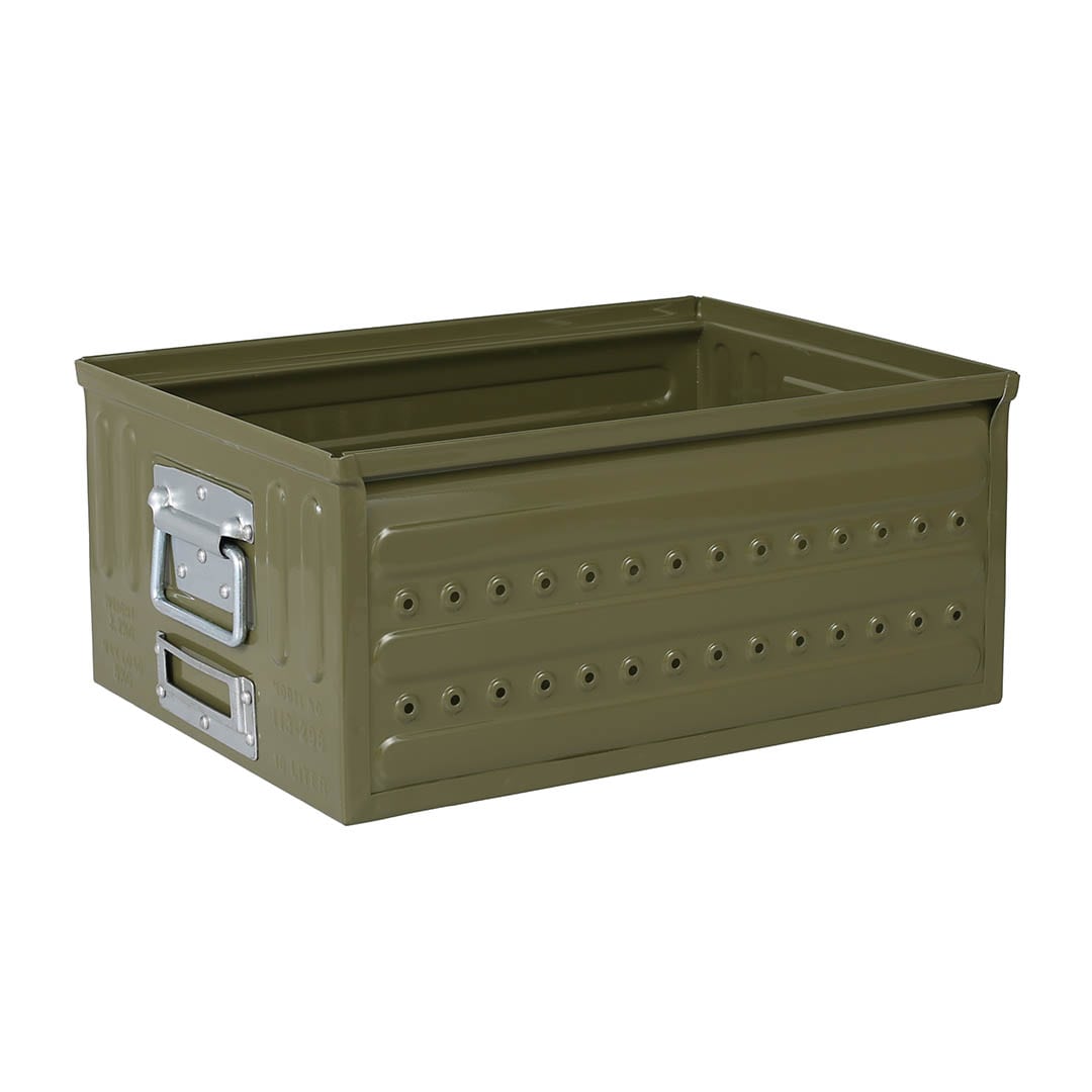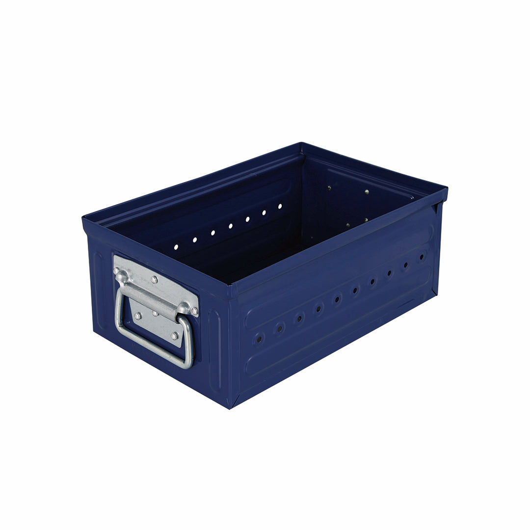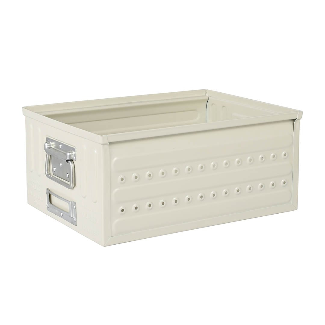 タフでハードなルックスそのままの性格。"軽量化"や"折畳み可能"なんていう言葉は彼の辞書にありません。スタッキングしても、物を入れても響く金属音は決して小さくは無いけれど、それ位不器用な奴と過ごすのも面白い。ちょっと乱暴に使ってこそ分かり合える相棒かもしれません。サイズ違いとスタッキングが可能です。