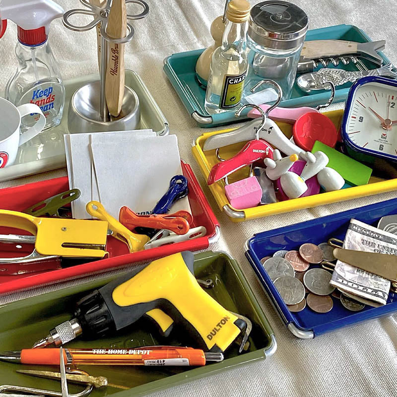 カラーバリエーション豊富なオリジナルのスチールトレイ。 使えば使うほどに味わいが増すスチール素材は、使う人によって新しい顔を見せてくれます。 フレームに使用されたアルミ製のワイヤーが程良い抜け感を演出。中心部分には、エンボス加工で施された"DULTON"の文字が。 お気に入りのカラーを末長く使って経年変化を楽しんだり、色違いで揃えて気分によって使い分けたり。 小さすぎず、大きすぎず、スタッキングも可能なので保管にも困りません。