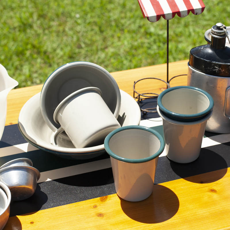 海外の蚤の市で見つけた時のあの憧れを思い出させてくれるような、どこか懐かしさを感じるホーロー(琺瑯)のマグ。 耐久性に優れ扱いやすく、多くの人に愛されています。 キャンプの時にホーローマグで飲むコーヒーは格別、アウトドアには欠かせなくなりそうです。 もちろん、自宅で毎日使う定番のマグとしてもおすすめ。 ホーロー特有の色ムラさえも、使い込んだ分だけ愛着へと変わる憎めないアイテムです。 どんなテイストにも溶け込みやすいベーシックな[Beige]、品のある深い色味が印象的な[Green]、グリーンの縁取りがリズミカルな[Beige/Green]の3色展開。