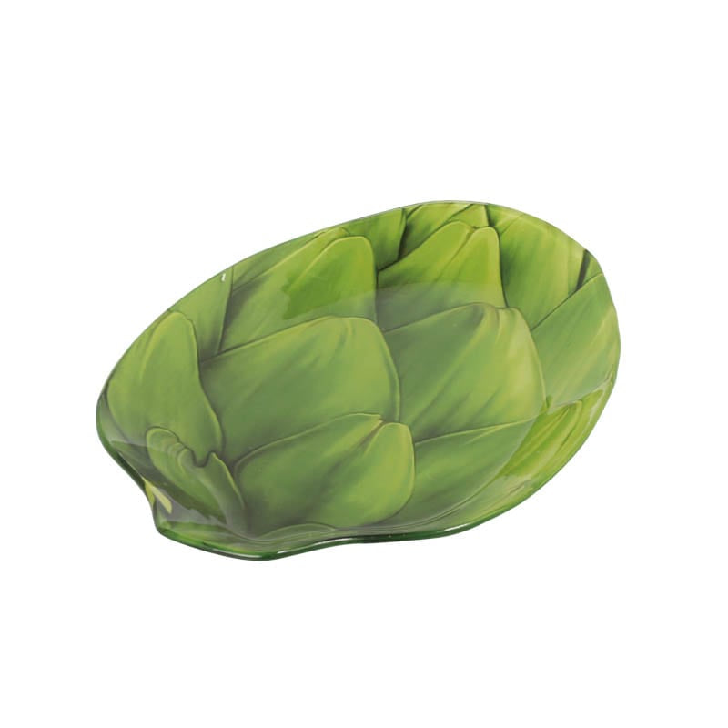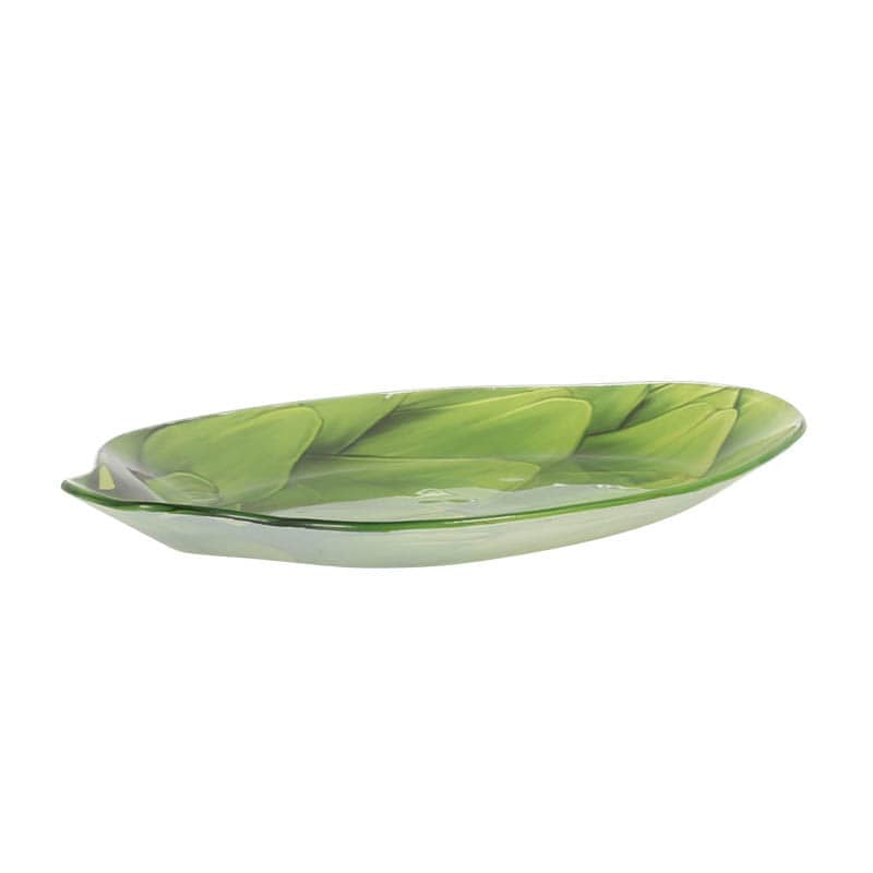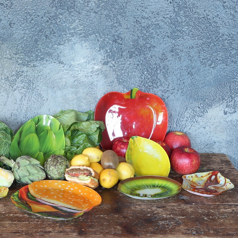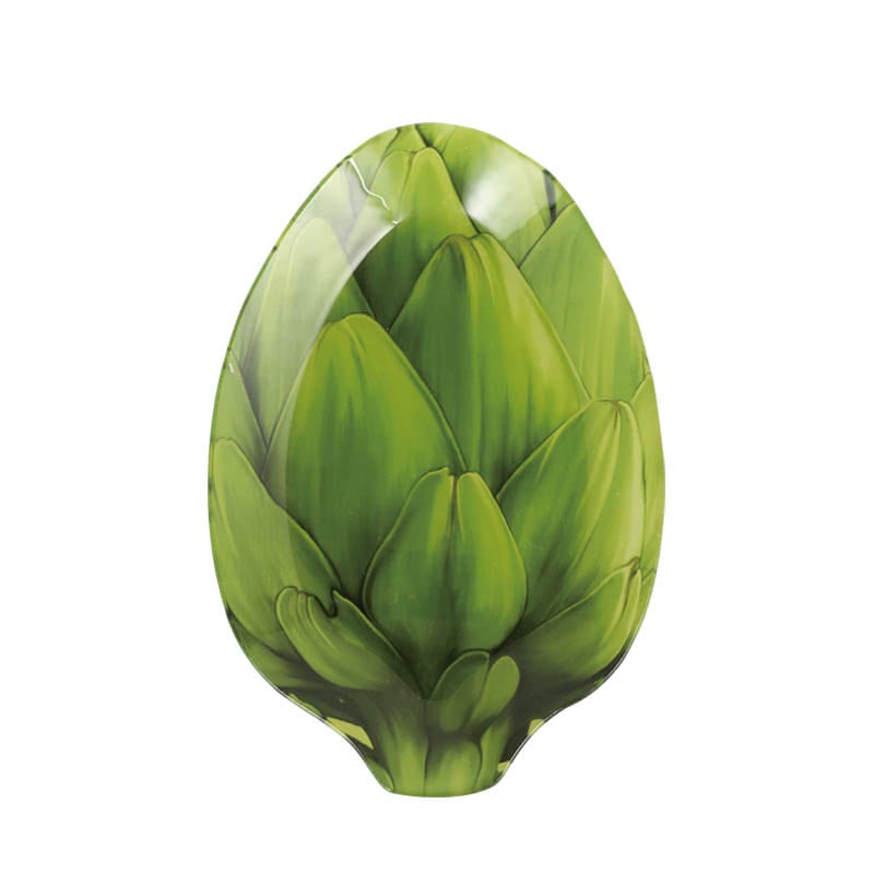 写真に収めれば、思わず本物と見間違うリアルな食べ物が描かれたガラスプレート。遊び心とユーモアに溢れたプレートたちは、食卓に元気を与えること間違いなし。食品以外を乗せるトレイやインテリアとしても注目株です。グリーンの濃淡がリアルなアーティチョーク。