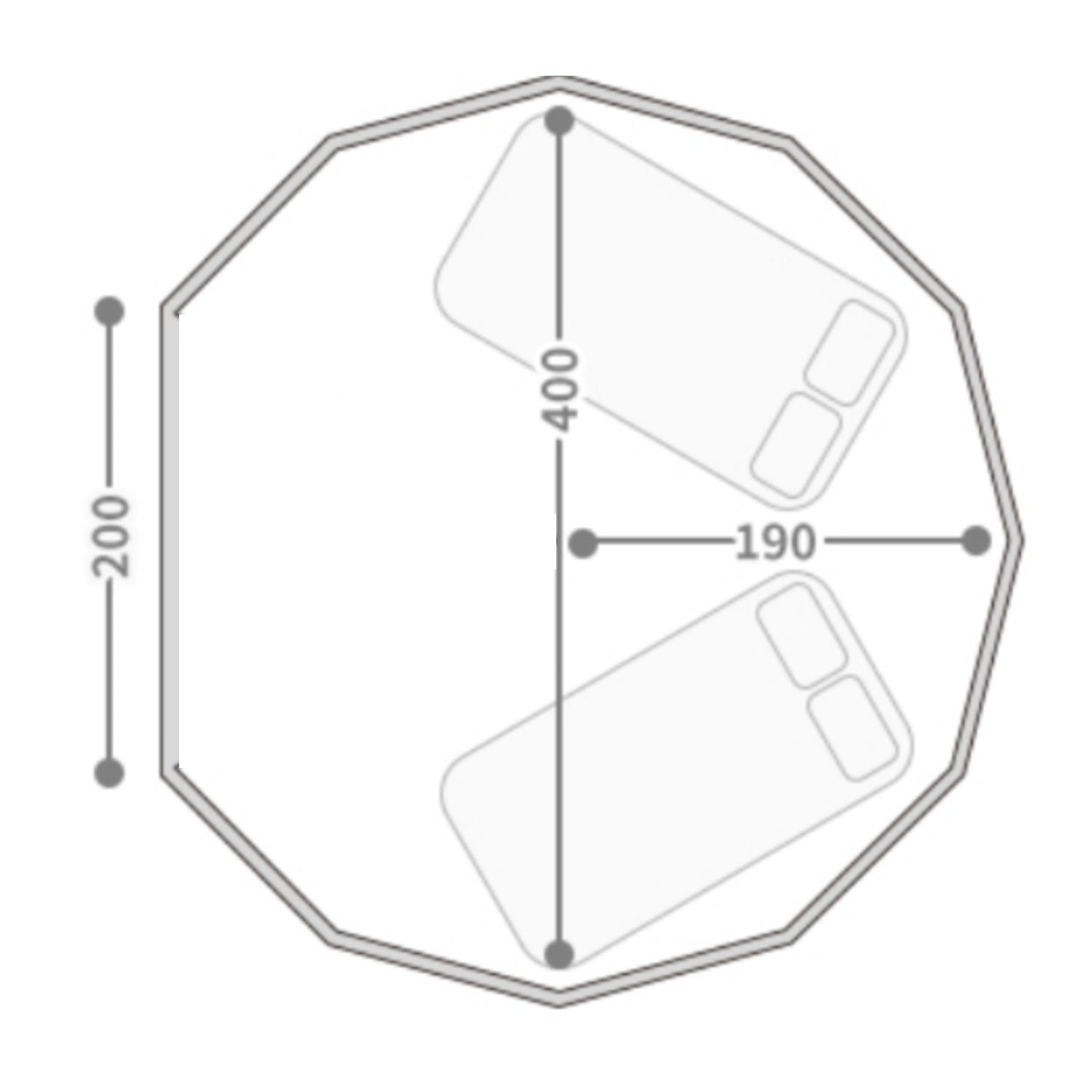 使用時:直径(約)400cm、半径:(約)190cm、正面の長さ:(約)200cm 収納時:96×24×7cm