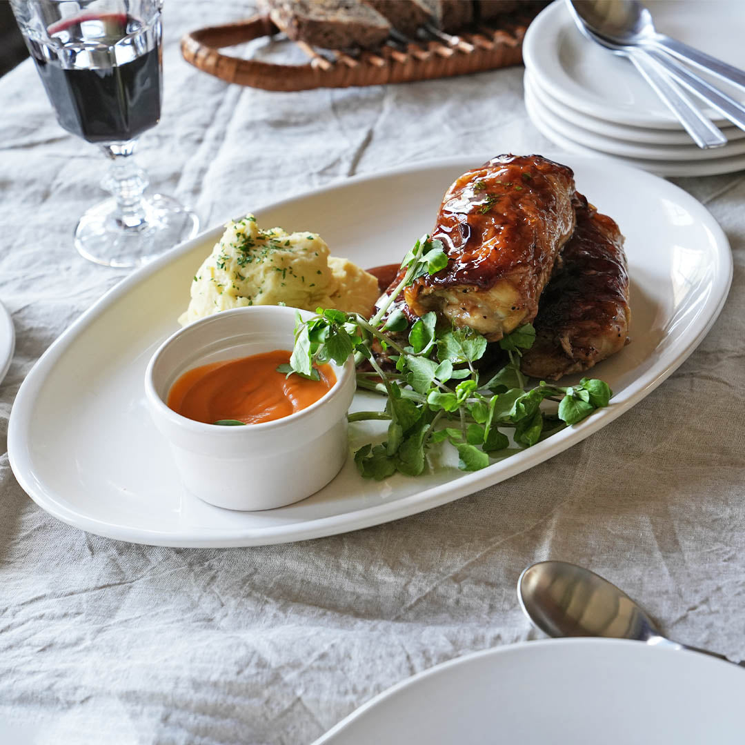 スタンダードを追求したテーブルウェア"LAND WARM STONEWARE"シリーズ。 厚みと重みがしっかりとあり、古き良きダイナーを彷彿とさせます。 料理を引き立てるシンプルなデザインと、ストーンウェアならではの暖かみのある風合いが心地よく、日常的に愛用できる食器です。 取り分けに使える小さいサイズから食卓の中央を彩る大皿まで、用途を網羅した全14種類をご用意。 飲食店の食器としても利用できるほどの充実のラインナップで、テーブルコーディネートも楽しみたい。