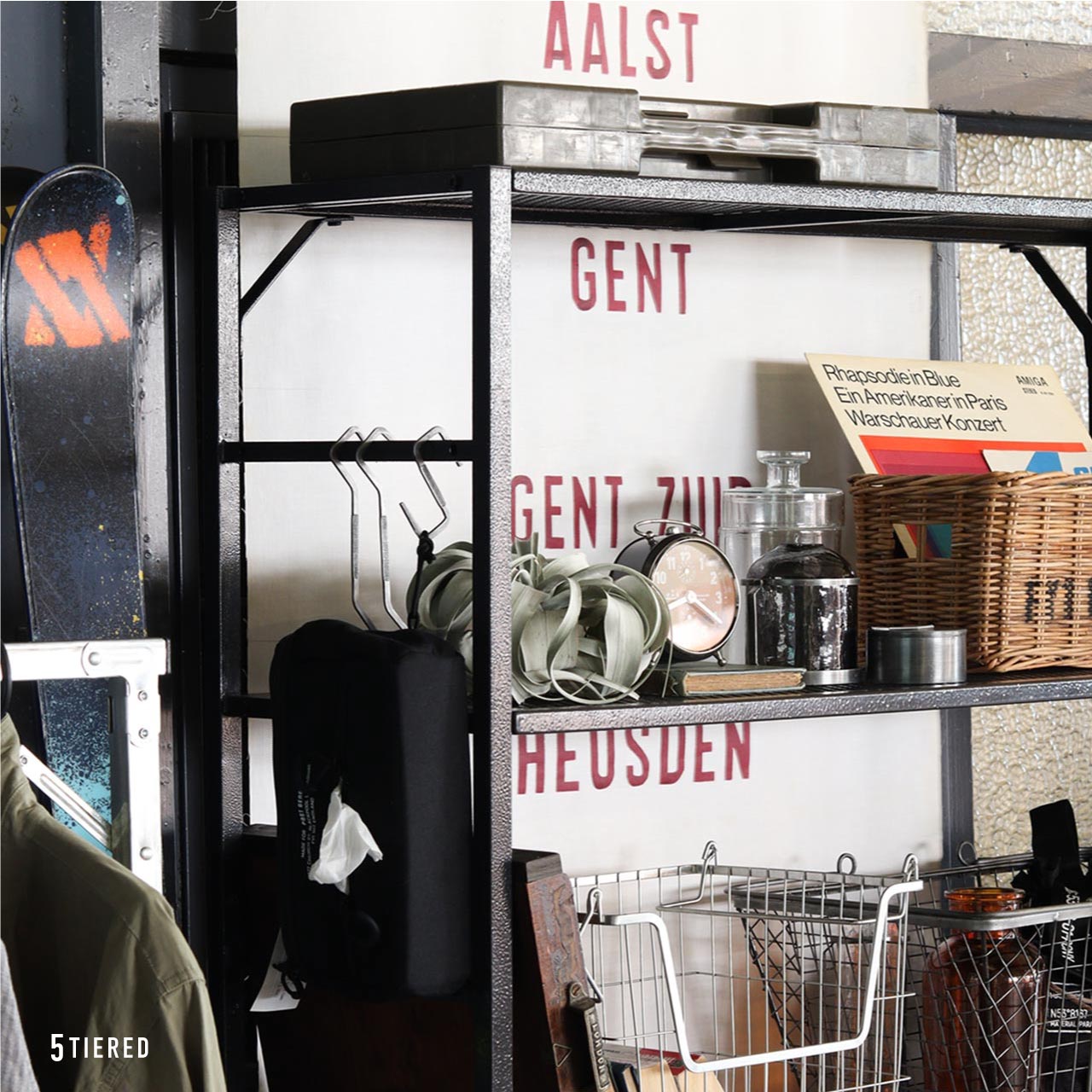 また、POST GENERALのヘビーデューティーバスケットと組み合わせると、日用品や衣類の収納にスペースの無駄なくシェルフを活用いただけます。