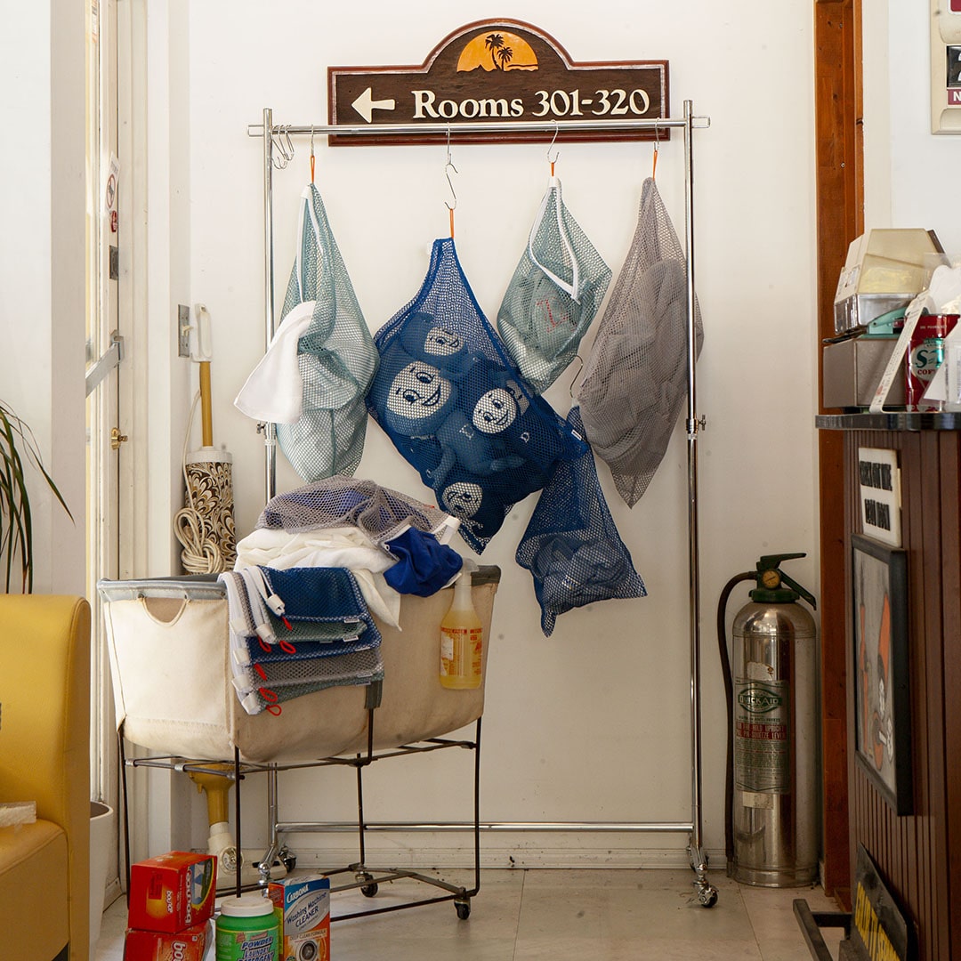 鮮やかなブルーにオレンジのフープがアクセントの効いたメッシュポーチ。 パッキングや日常の洗濯ネット、小物収納まで同シリーズで揃えることができるサイズ展開です。 サイドまでファスナーが開き、出し入れが容易。 旅行時は衣類の収納をスムーズに、帰宅後はそのまま洗濯に出すことができストレスフリー。 何気ない日用品にも拘りたい、そんな気持ちも満たしてくれる気持ちの良いアイテムです。