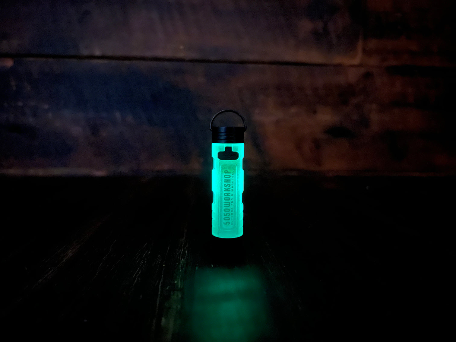 蓄光ボディなので、ライトを消した後も本体が光ります。