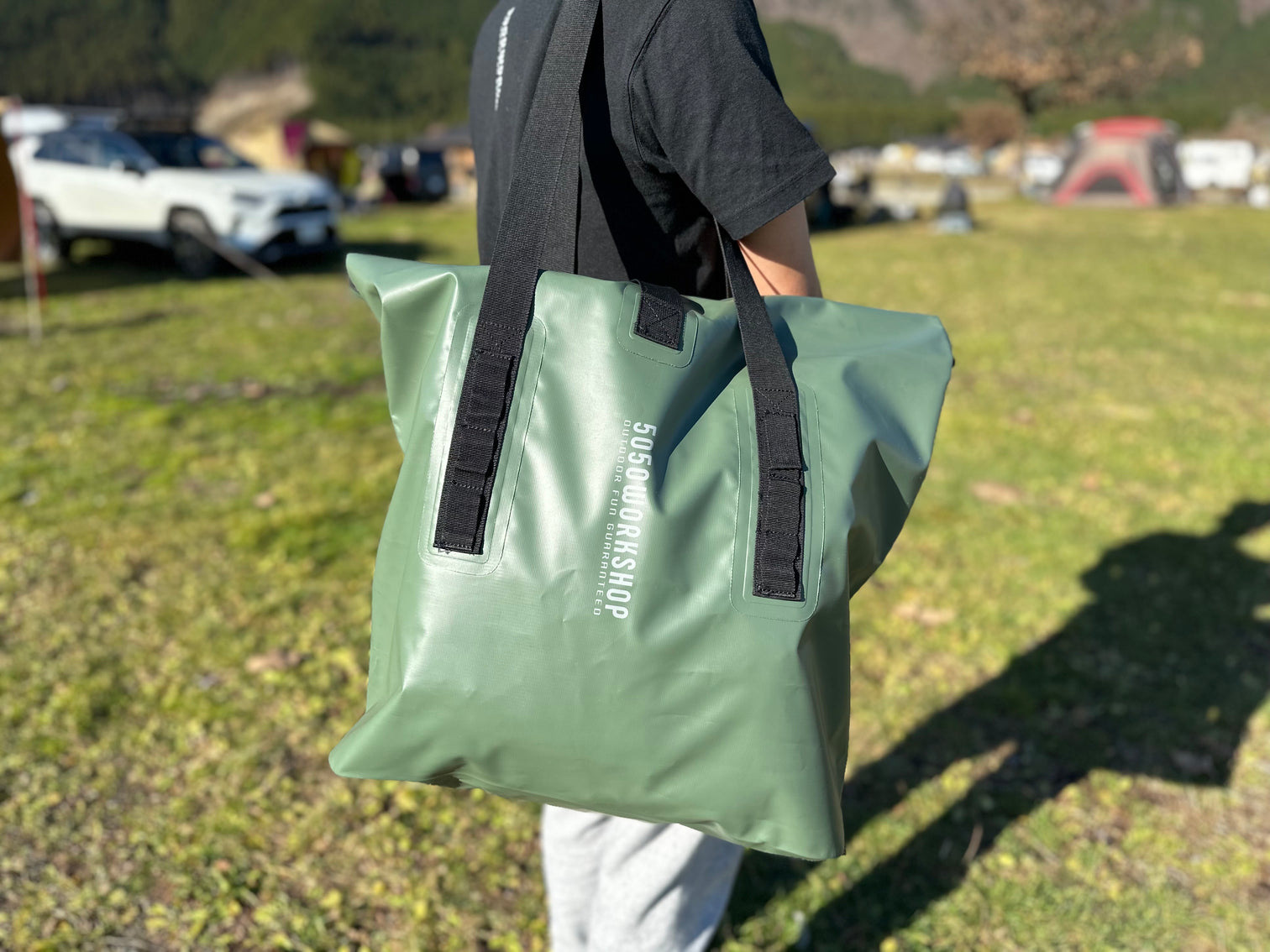 5050WORKSHOPのMULTI DRY BAG(マルチドライバッグ)は58リットルの大容量防水バッグです。