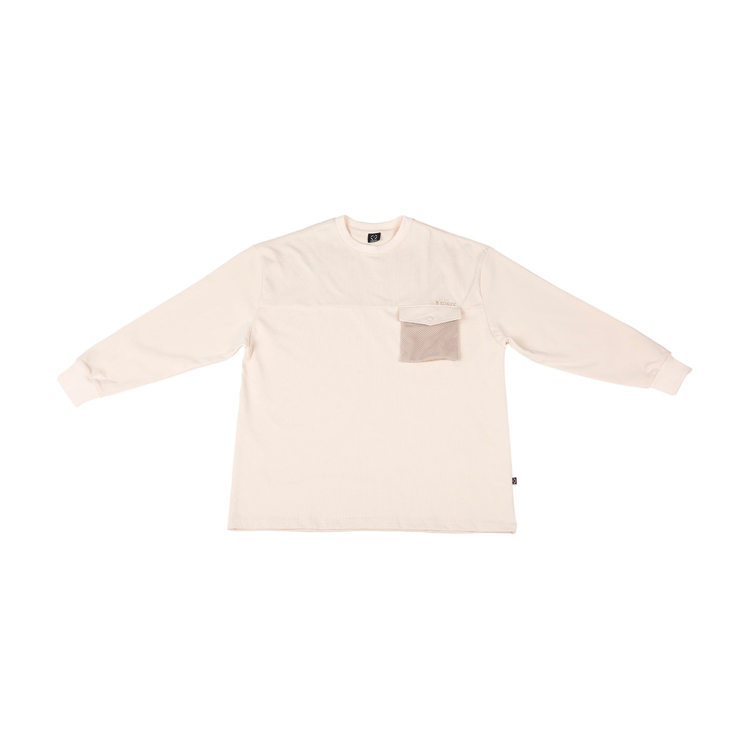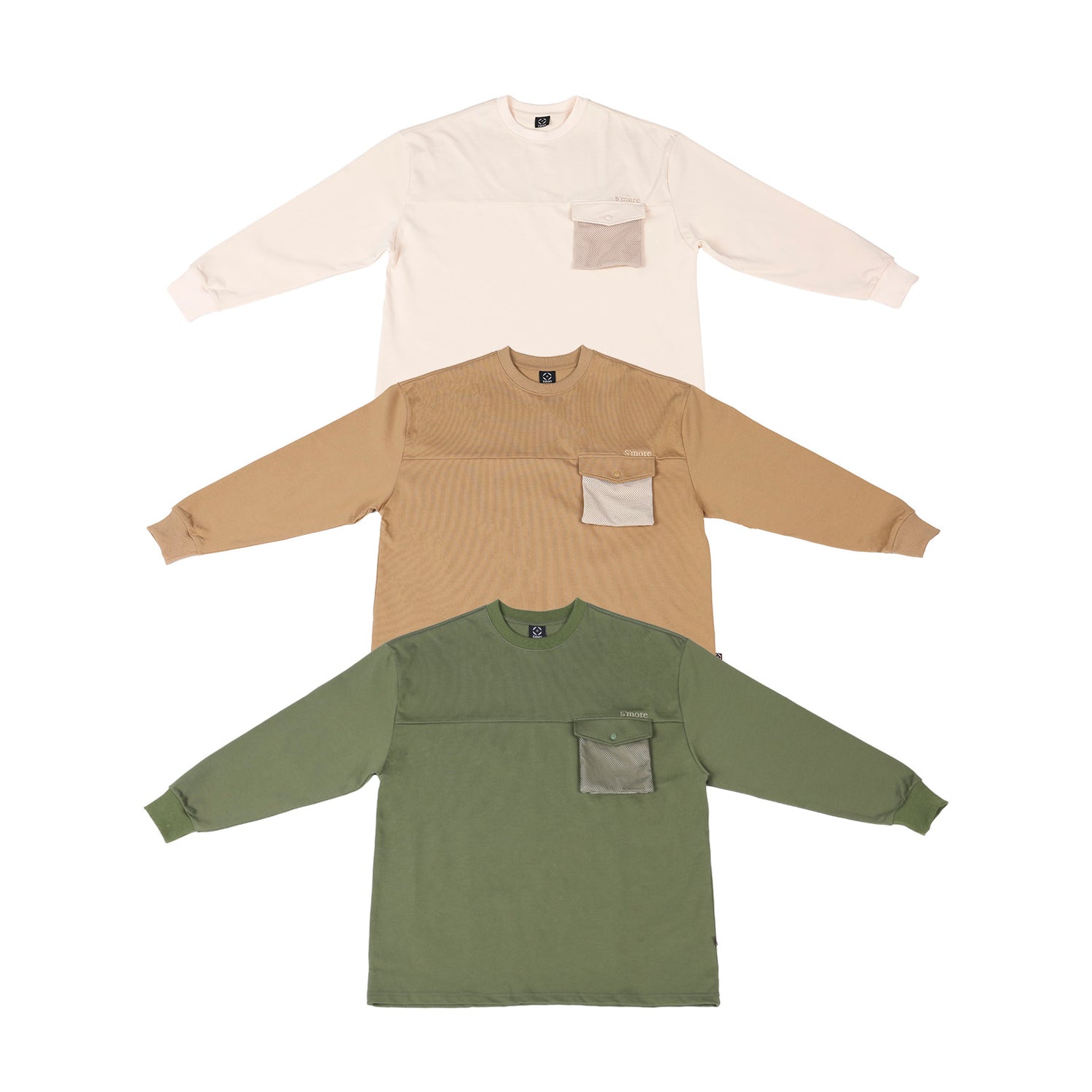 ●2wayポケットなので、中に入れるとシンプルな長袖Tシャツで、外に出すとメッシュポケットがポイントに!