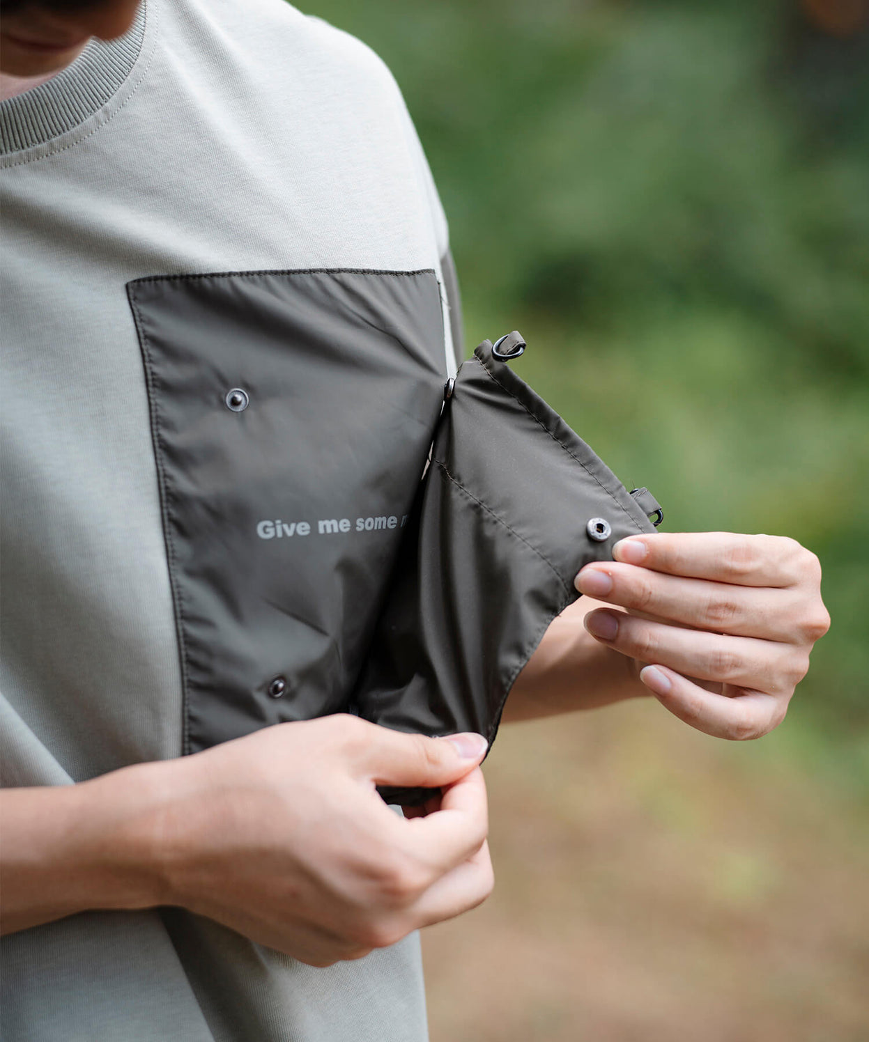 2WAY REMOVABLE POCKET COTTON CREW NECK BIG S/S T-SHIRT