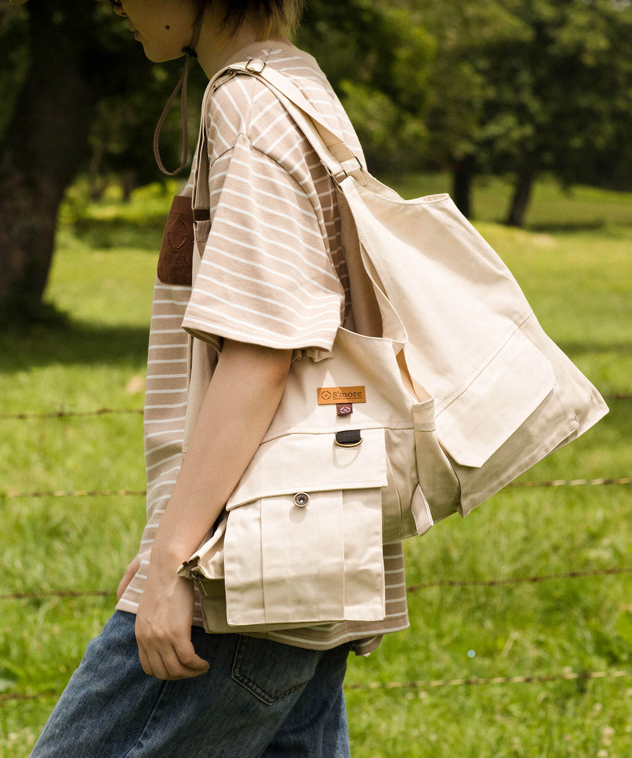 ●後ろに大きいポケット付き、手ぶらで設営作業可能!