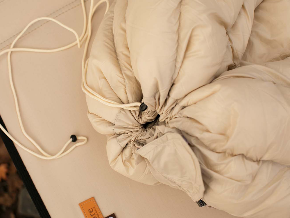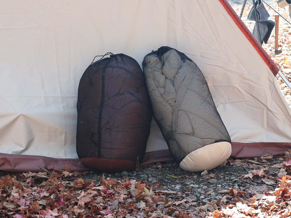 表地のナイロン生地には撥水加工をしており、結露によるダウンの濡れを防止します。寒い夜でも快適にお過ごしいただけます。※完全防水ではありません。